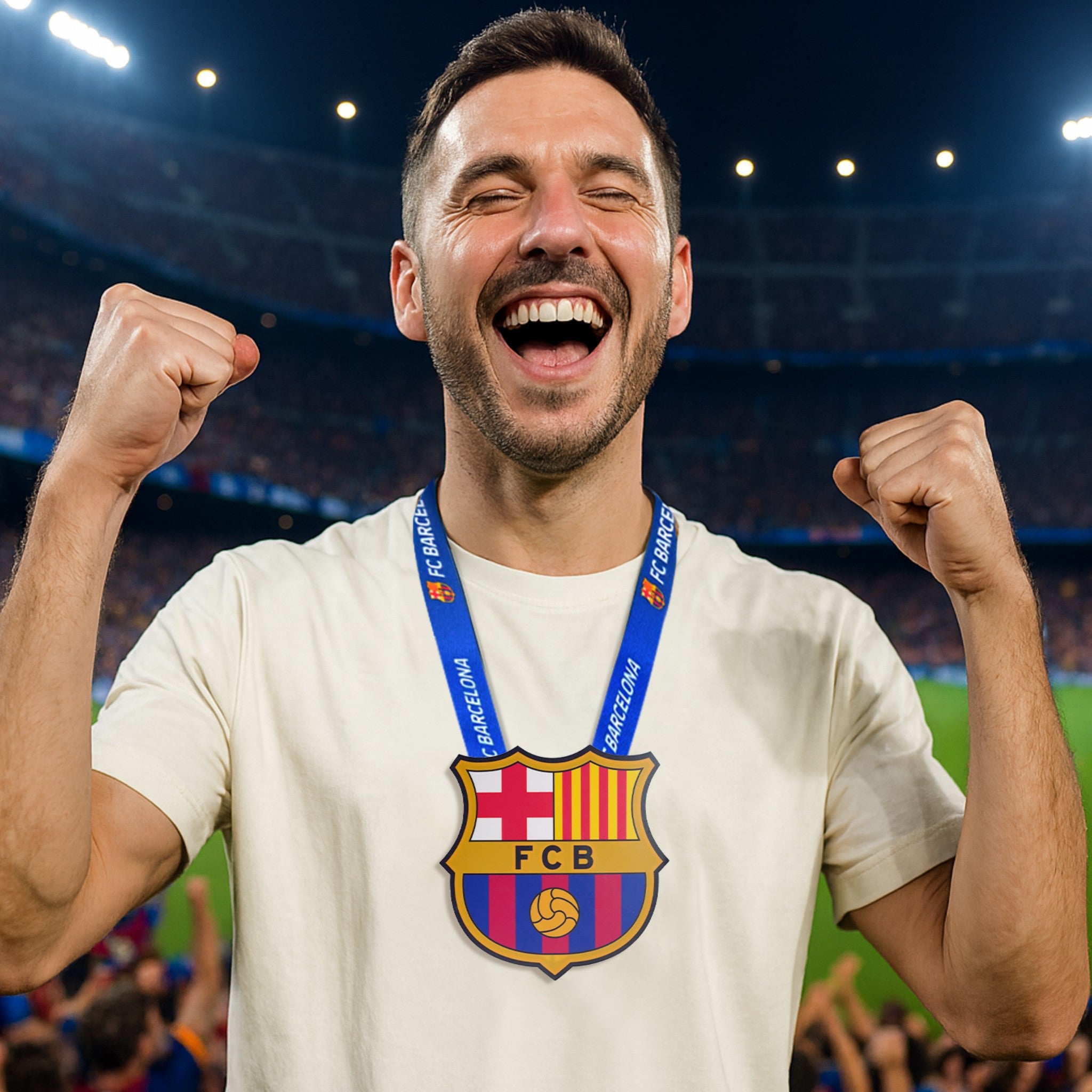 Lleva tu pasión culé contigo y haz brillar los colores del FC Barcelona donde vayas. Un escudo luminoso portátil, oficial y pensado para acompañarte en cada partido, celebración o momento especial.